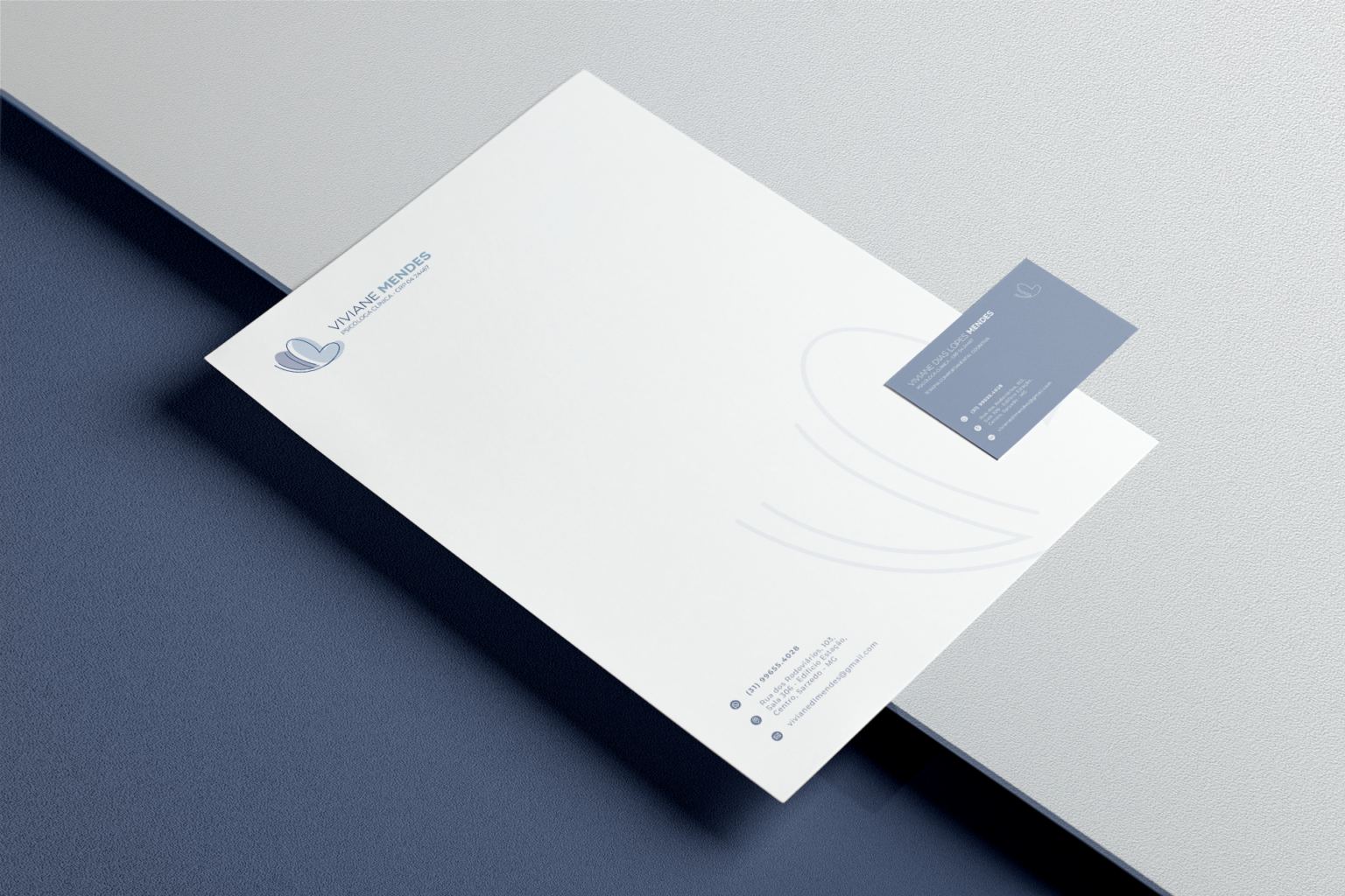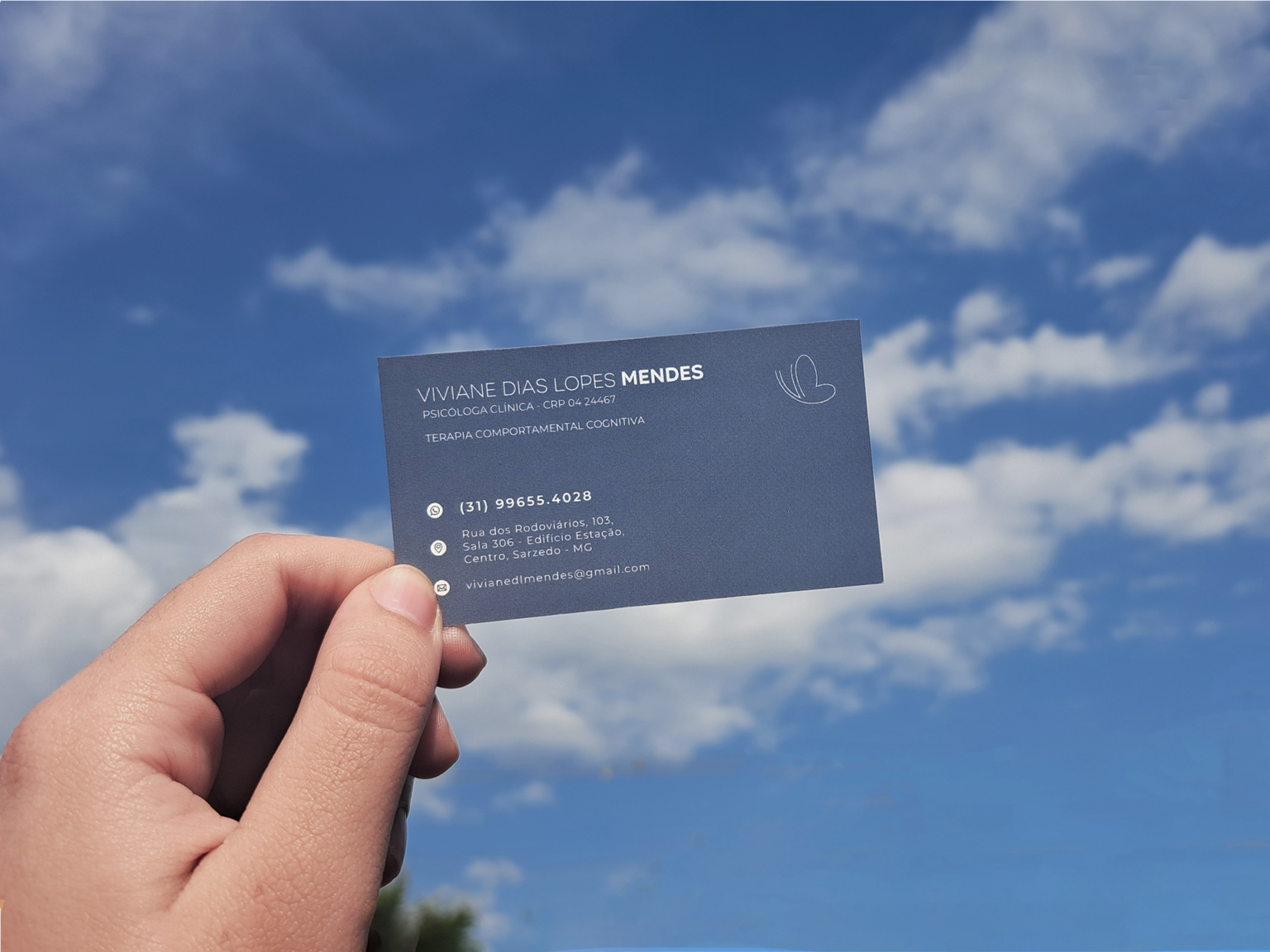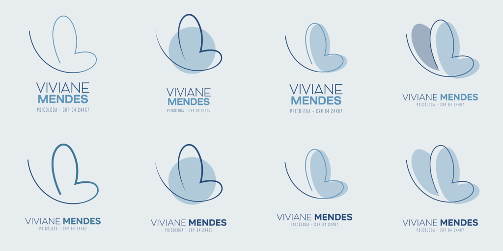 A cliente trouxe como briefing a ideia de que a marca trouxesse a borboleta — animal símbolo da área de psicologia — e a cor azul. A partir disso, criei um esboço, que após aprovação da cliente, foi refinado e posteriormente a aplicação cromática, utiizados na criação de um cartão de visitas e de um modelo de papel timbrado em formato .word