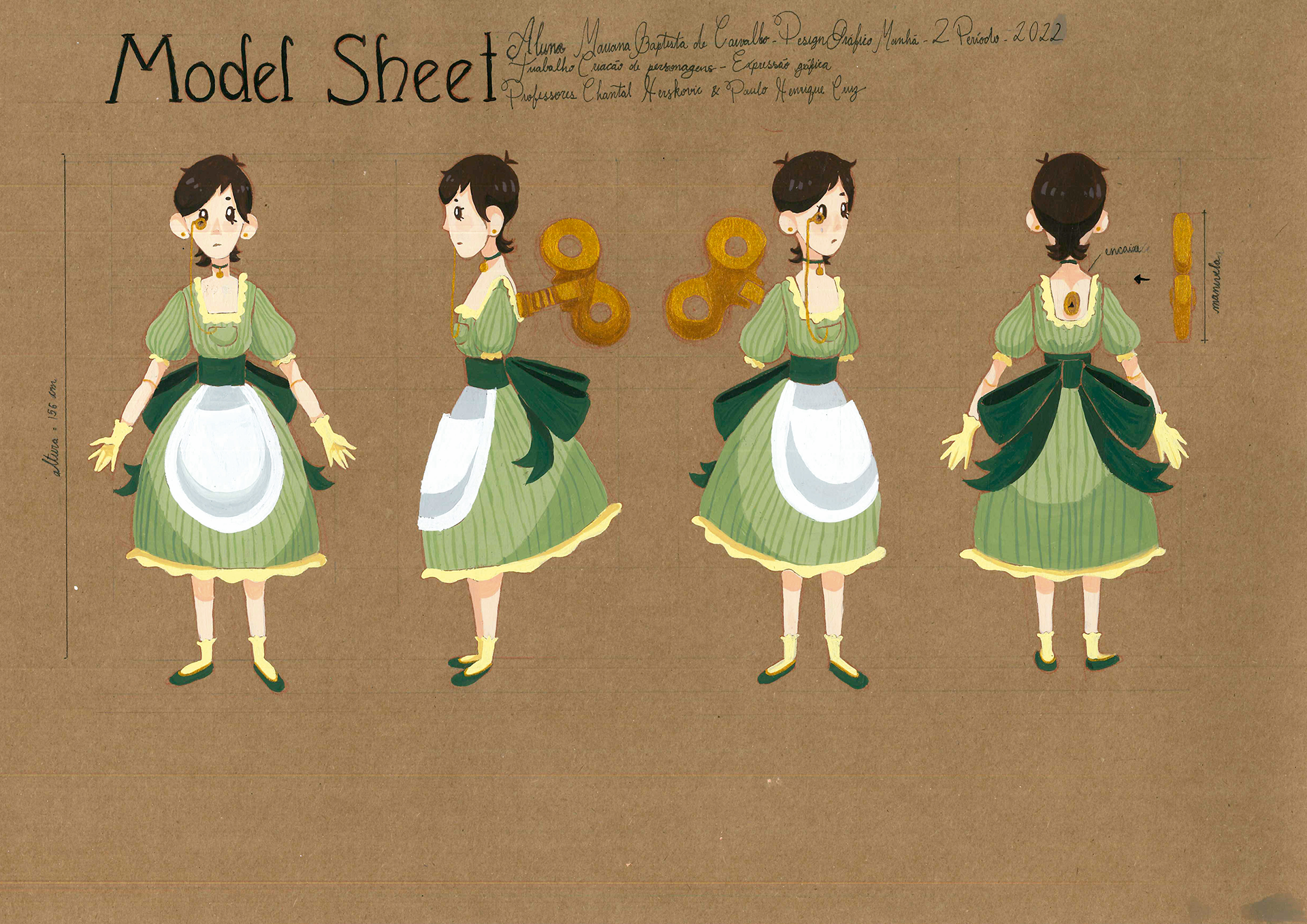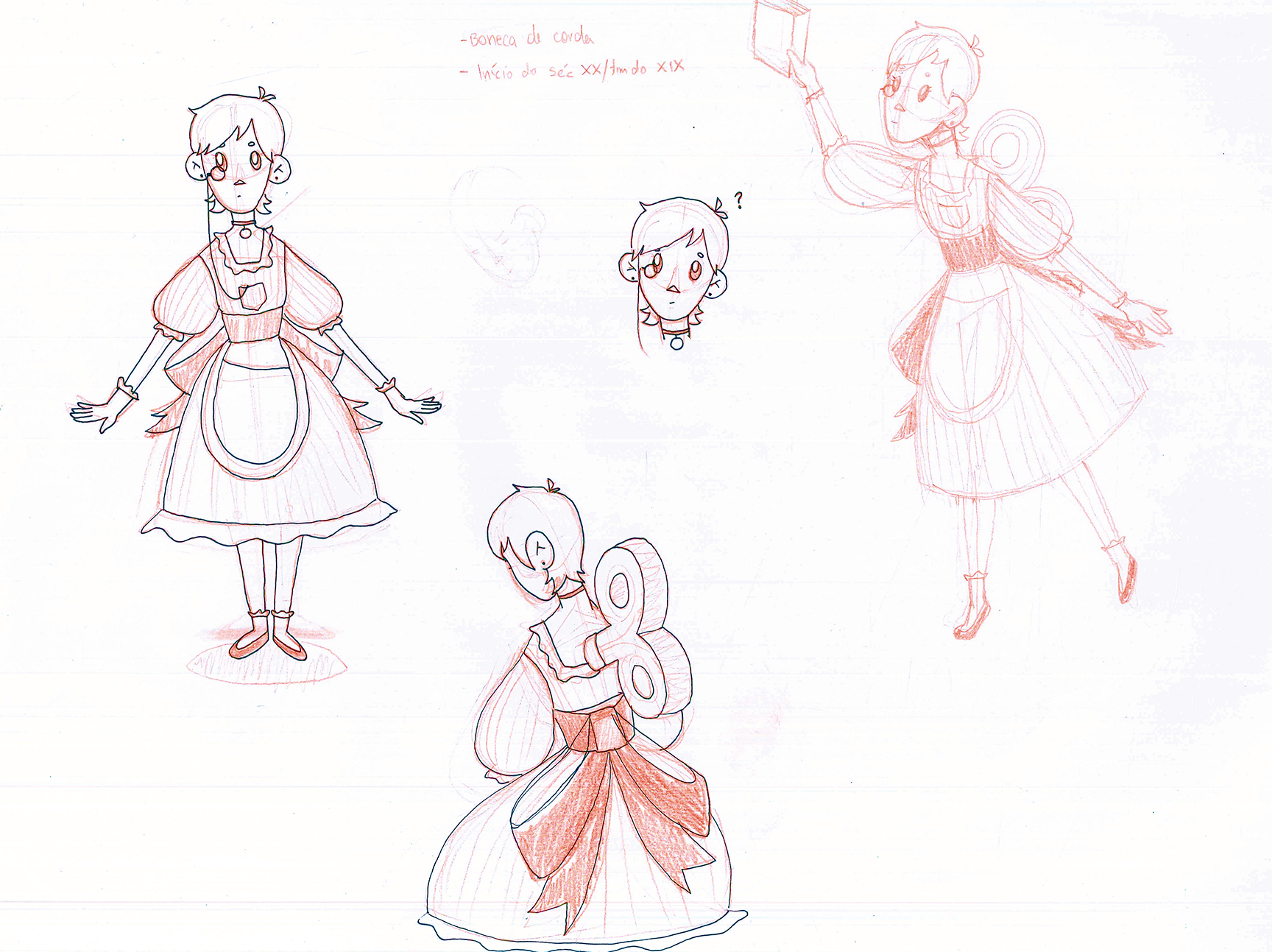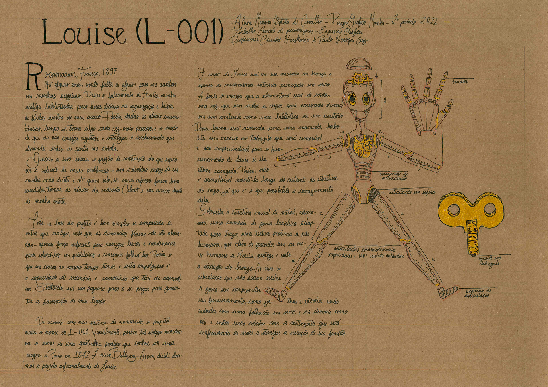 Concept da personagem Louise, criado como um projeto para graduação em Design Gráfico. Feito inteiramente à mão simulando um diário/diagrama de um inventor francês da vila de Rocamadour em um universo steampunk.