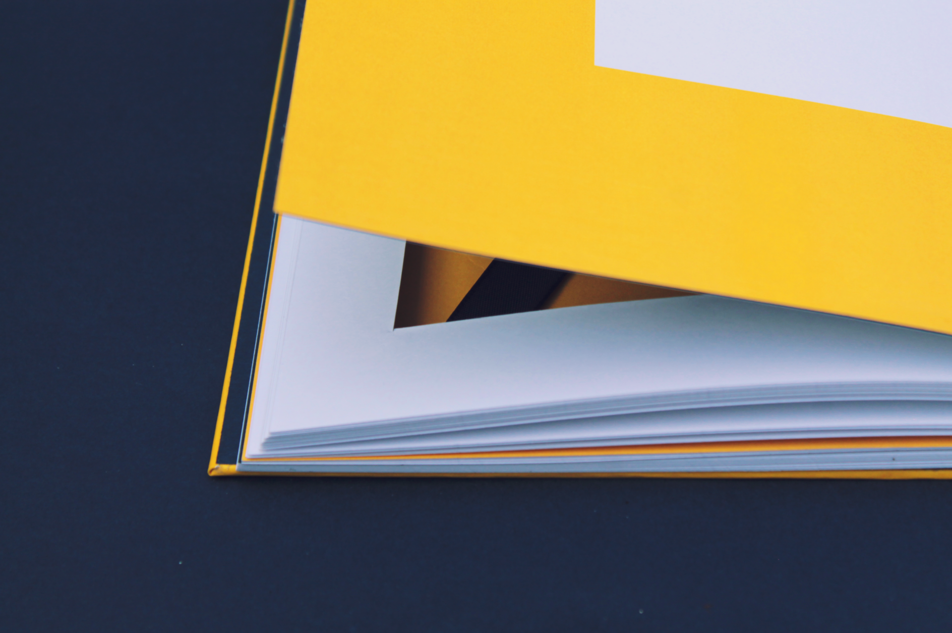 A costura é convencional, com lombada exposta na parte interna da capa. O miolo é dividido em 2 tipos de caderno que intercalam entre si — o primeiro em papel Apergaminhado 180 g/m2, que conta com um vão interno de 15 x 15 cm feito em faca especial e o segundo em papel Apergaminhado 90 g/m2.