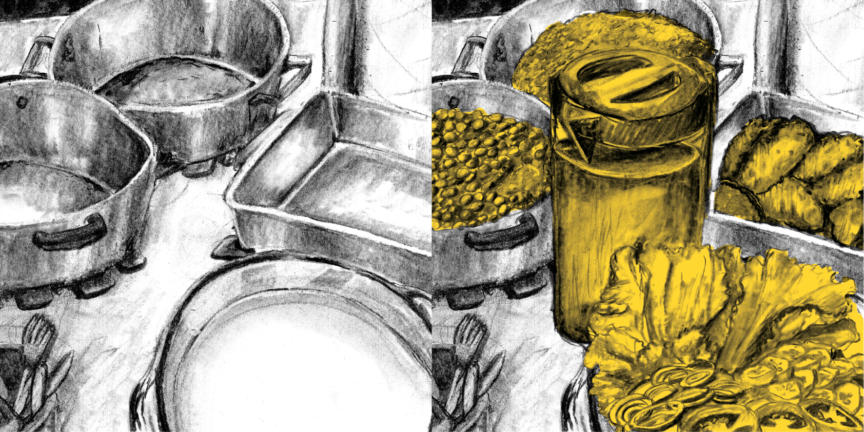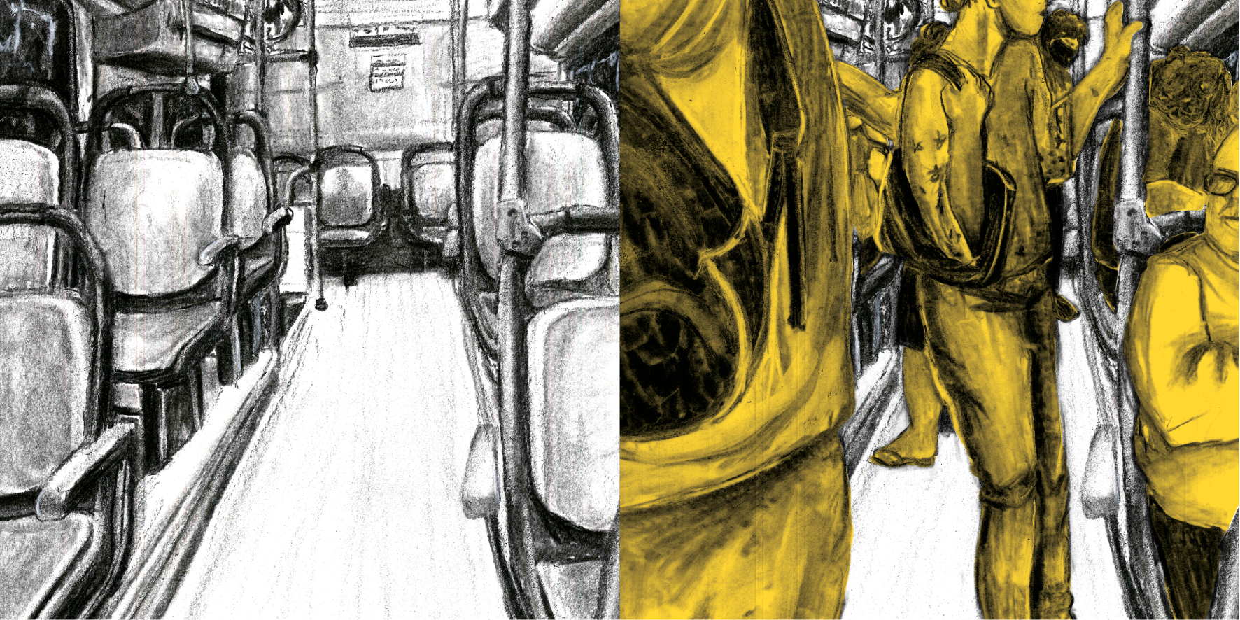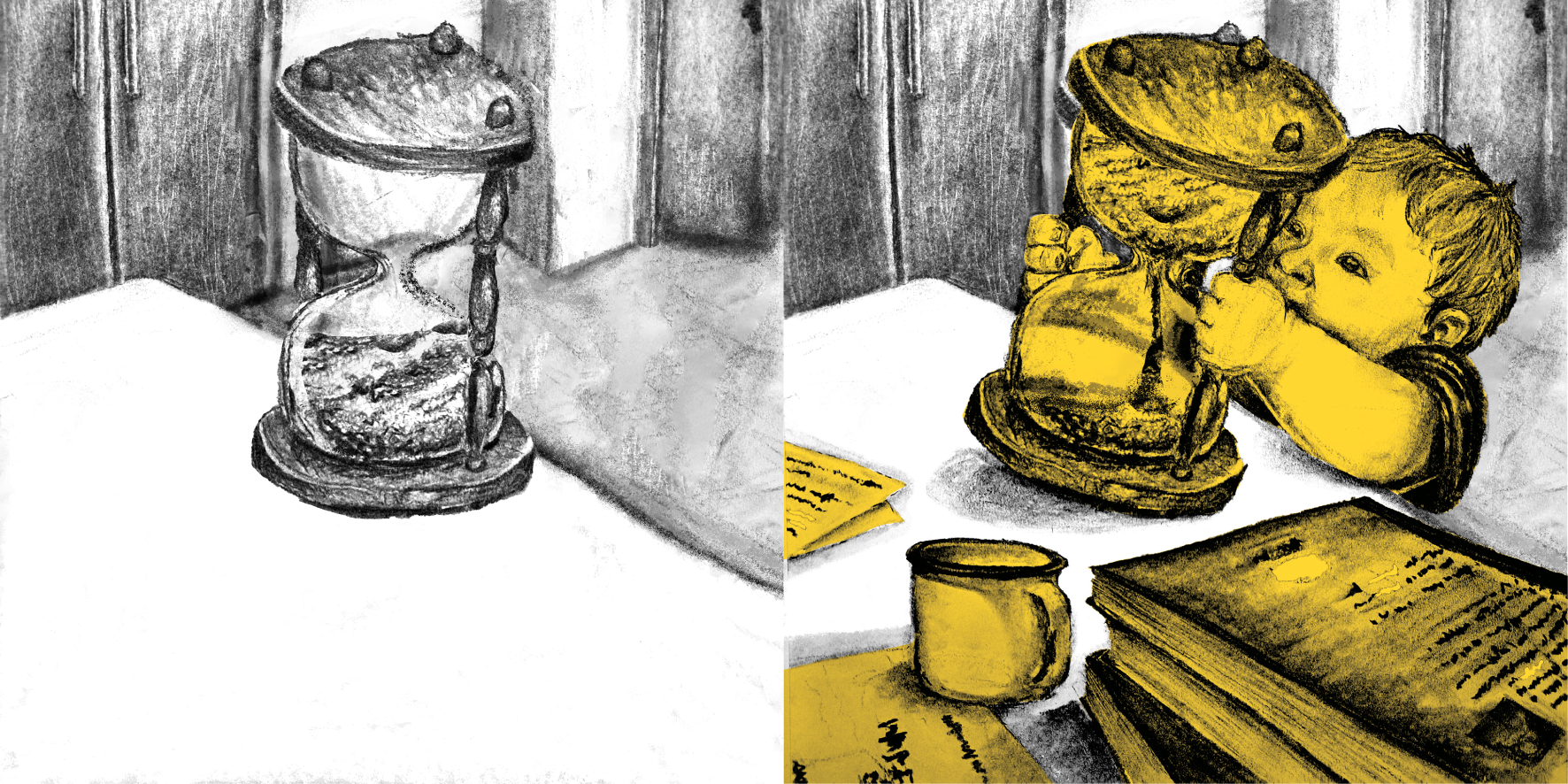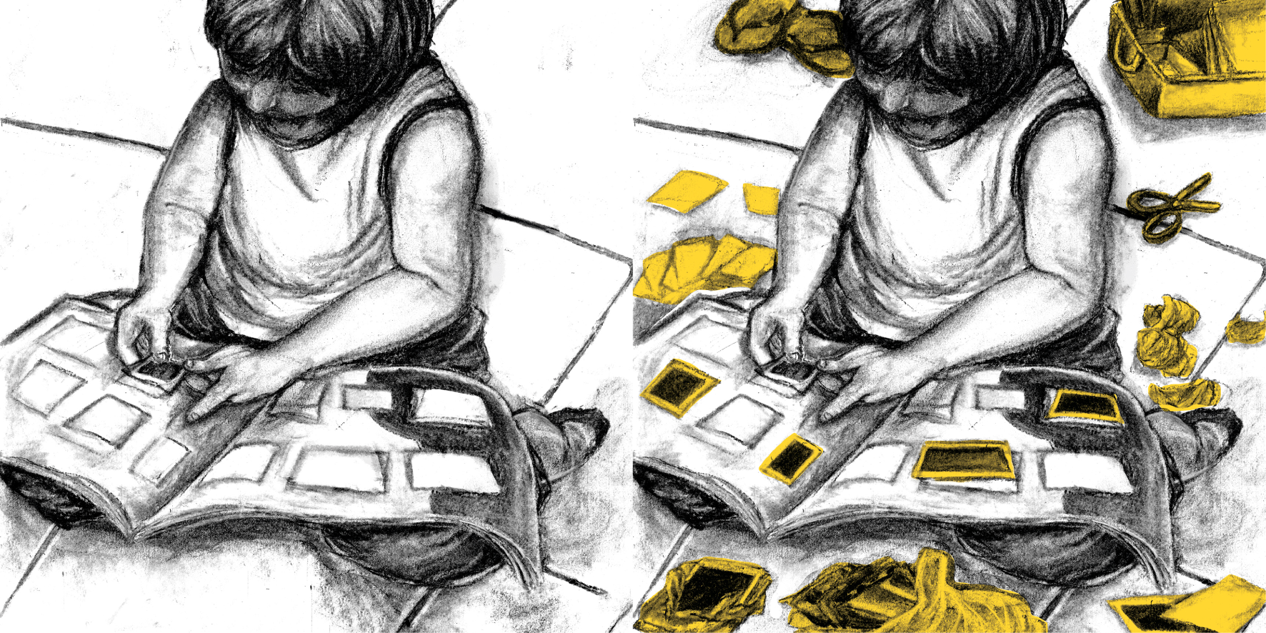 Assim, todas as artes foram produzidas com dois momento de leitura: O cheio, onde há a sobreposição de uma presença [uma pessoa, um objeto, etc.] em um cenário, e o vazio, gerado quando o leitor retira este “cheio”, podendo observar apenas um cenário vazio. Essa retirada é possibilitada pela construção dos cartões ilustrados, onde os elementos da ilustração são impressos em papel vegetal, separados de seus cenários.